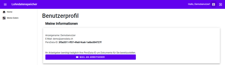 Mit dem Demobenutzer können Sie die Anwendung durchstöbern. Die Demo-Anmeldung funktioniert ohne die 2-Faktorauthentifizierung. E-Mail-Adresse: demo@persdata.ch Kennwort: PersData2022