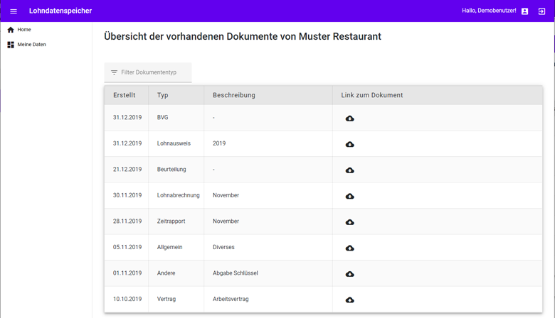 Lassen Sie die Organisation und sichere Speicherung Ihrer anstellungsrelevanten Daten uns. Alle Lohnabrechnungen, Lohnausweise, BVG-Ausweise, Zeitrapporte, Verträge, Mitarbeiterbeurteilungen usw. an einem Ort - pro Arbeitgeber gruppiert.